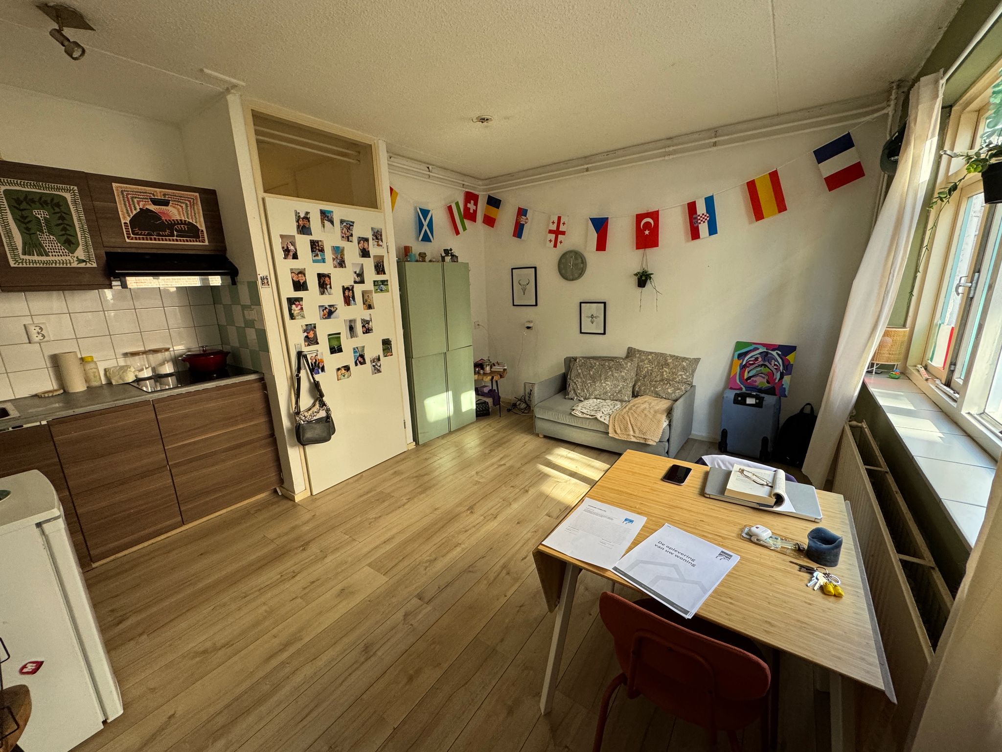 Dit 1-kamer appartement (22 m2), met eigen voordeur, heeft een woon/slaapkamer met open keuken en veel lichtinval, een badkamer met douche en toilet, een opslagkast met wasmachine aansluiting. De keuken is voorzien van een elektrische 4-pits inductiekookplaat met recirculatie afzuigkap. Het appartement wordt ongemeubileerd en ongestoffeerd verhuurd. Diverse zaken (vloer, gordijnen, meubels) zijn ter overname van de huidige huurder.